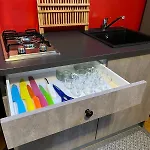 Dieses 100 m^2 große Apartment verfügt über einen Wasserkocher, einen Kühlschrank und Küchenutensilien sowie eine komplette Küche. Die Gäste dieser Unterkunft können den Komfort von Ausstattung zur Kaffee- & Teezubereitung genießen. Das Restaurant Afrodita Chef bietet mediterrane Speisen und liegt circa 5 Gehminuten von diesem Apartment entfernt. Die nächstgelegene Bushaltestelle Garganelli ist in der Entfernung von 100 Metern.